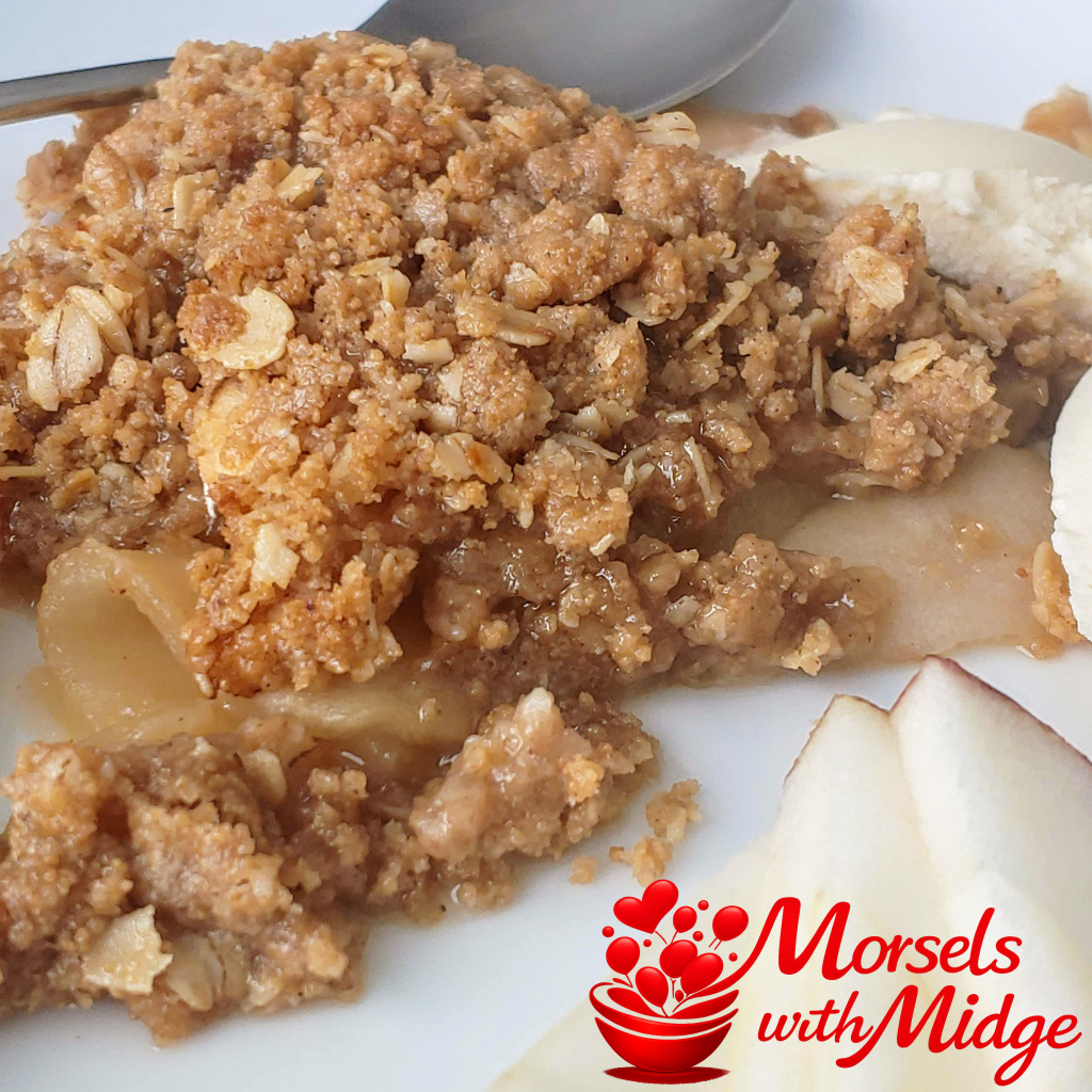 A warm, golden fruit crisp with a lightly sweet, crunchy oat topping—perfect for breakfast, dessert, or anytime you want a wholesome, fruity treat. Soft, juicy fruit meets a nutty, golden oat layer for a comforting and satisfying bite.